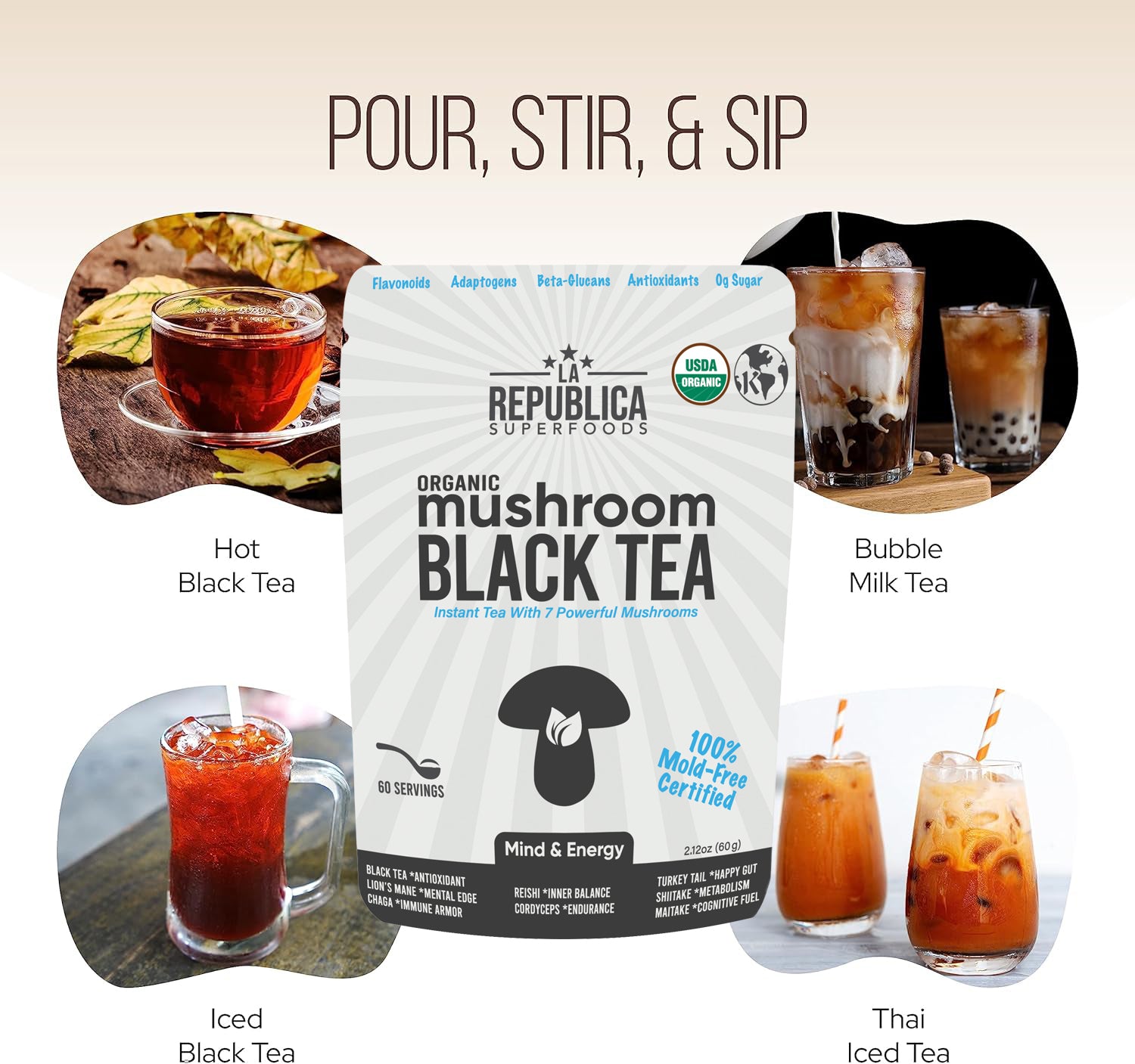 Lleve sus mezclas de bebidas en polvo habituales a nuevas alturas con micronutrientes infundidos, hongos adaptógenos orgánicos y una mezcla de potentes ingredientes de superalimentos. Nuestras mezclas de bebidas nutritivas están repletas de ingredientes orgánicos de primera calidad para elevar el perfil de sabor y crear una taza rica y cremosa de comodidad en todo momento. Todos pueden saborear las deliciosas mezclas de bebidas, ya que son veganas y no contienen gluten, lácteos ni soja.