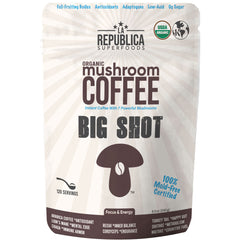 Descripción del Producto: El café orgánico con champiñones La República cambia las reglas del juego para tu mañana. Nuestra mezcla única de hongos mejora el sabor del café, reduce la acidez y minimiza el impacto negativo de la cafeína en el sistema nervioso y las glándulas suprarrenales. Disfrute de una mejor concentración, energía, protección neuronal y apoyo digestivo, todo mientras mejora su sistema inmunológico y su resistencia al estrés. Estamos orgullosos de utilizar únicamente cuerpos fructíferos enteros de champiñones para obtener los máximos perfiles nutricionales y de sabor. Nuestros hongos son cosechados y cultivados en el medio silvestre al aire libre por los mejores productores orgánicos del mundo.