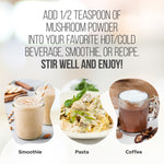 Simplemente agregue media cucharadita de esta poderosa mezcla a su bebida preferida, ya sea fría o caliente, o espolvoréela sobre sus comidas y refrigerios. Prepárese para experimentar una sinfonía de sabores y una gran cantidad de beneficios para la salud mientras los diez hongos superalimentos cuidadosamente seleccionados hacen su magia. Nutre tu cuerpo, vigoriza tu mente y embárcate en un viaje transformador con el extraordinario polvo de extracto de hongos Titan 10 de La República.