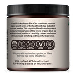 Ingredientes: Té negro orgánico del USDA, extractos de hongos orgánicos del USDA (melena de león, chaga, reishi, cordyceps, maitake, shiitake y cola de pavo)