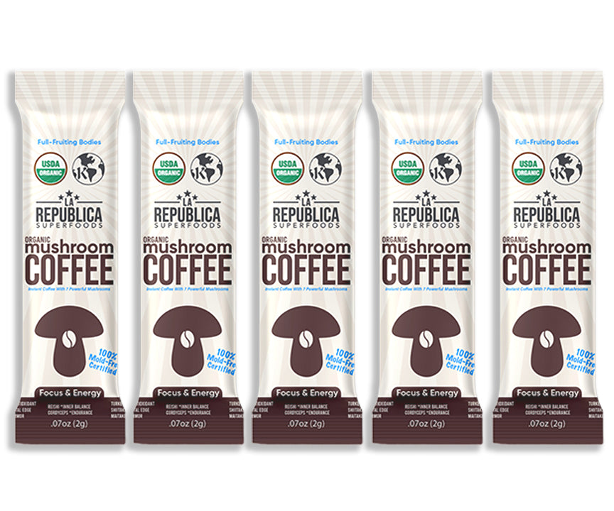 Embark on a delightful coffee exploration with La Republica's 3-Pack Sample Sachets of Mushroom Coffee. This irresistible offering allows you to savor the exceptional flavors and nourishing benefits of this incredible brew before committing to a larger supply. With each sachet carefully infused with a blend of seven superfood mushrooms, every sip takes you on a journey of rich aroma and smooth indulgence. Discover the magic of mushroom coffee as you awaken your senses and unlock a world of unparalleled taste and vitality. Once you experience the exquisite blend, there's no doubt you'll be coming back for more to stock your shelves with this extraordinary elixir. Start your coffee adventure today and ignite your passion for the remarkable flavors that await you.