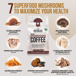 Start your day with La Republica Super 7 Ground Mushroom Coffee and sip your way toward vitality, clarity, and well-being — one cup at a time.